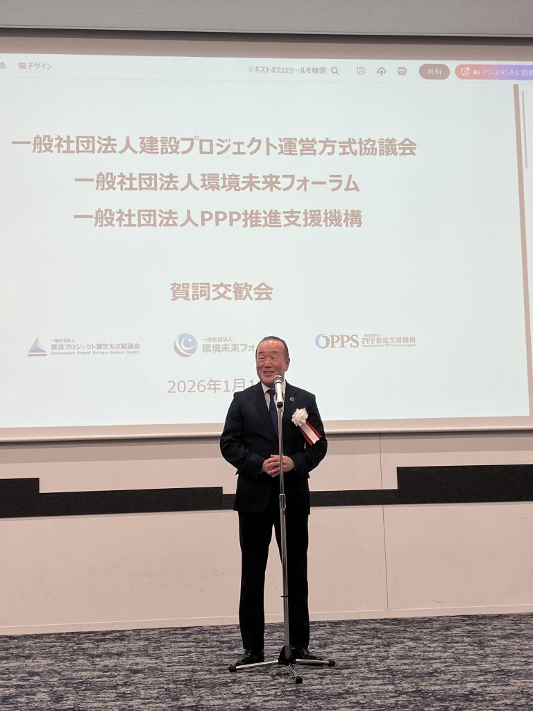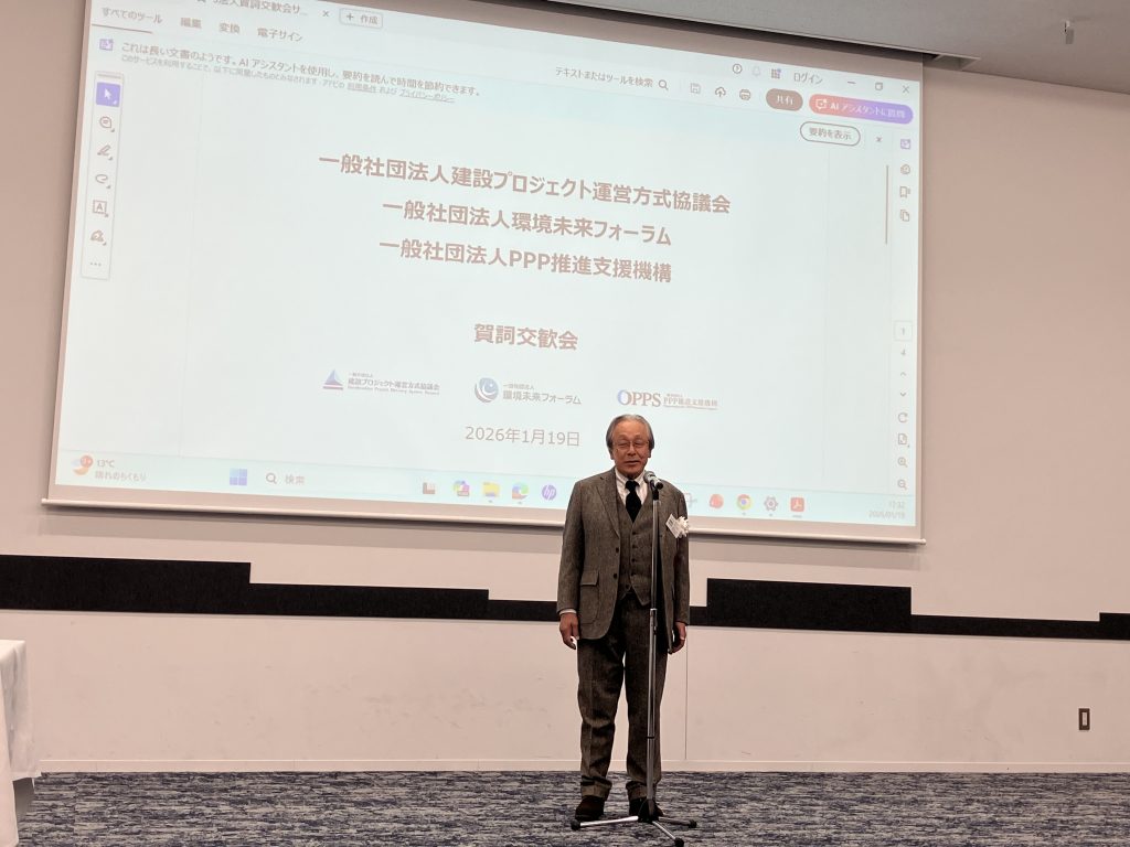 2026年1月19日、一般社団法人PPP推進支援機構(OPPS)、一般社団法人建設プロジェクト運営方式協議会(CPDS)、一般社団法人環境未来フォーラム(KMF)の3法人合同の新年賀詞交歓会が東京都港区で開催されました。